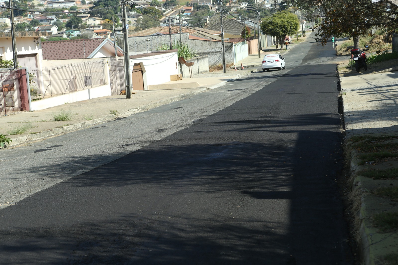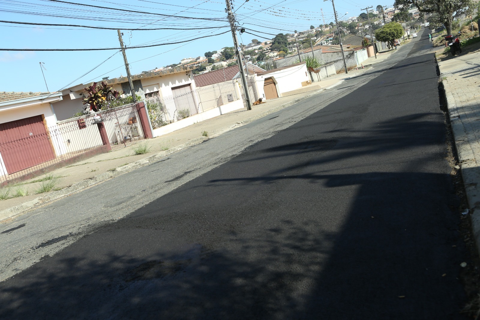 A Prefeitura de Ponta Grossa realiza nesta semana melhorias na Rua José Joaquim da Maia, em Vila Oficinas – proximidades do Lago de Olarias. Nesta via, estão sendo recapeadas seis quadras, com a correção das erosões com massa asfáltica, seguida da aplicação de microrrevestimento, dando uniformidade à pista.