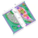 Já outra parte da praça ficará a área infantil, que possui um desenho de piso colorido e estimulante para as crianças, além de diversos brinquedos formando uma ampla área de playground. A praça deve contar também com piso emborrachado nas áreas de utilização dos brinquedos para proteção contra impactos. Esse setor possui também mesas e bancos e uma ampla área arborizada.