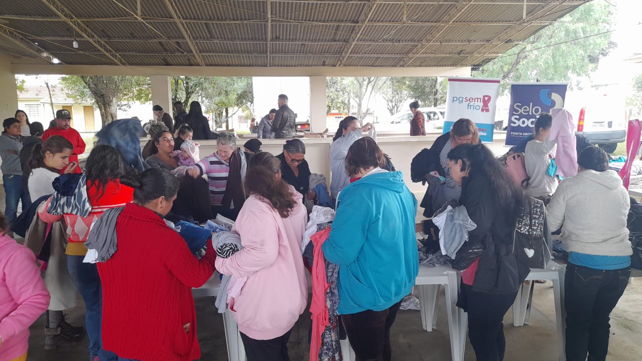 A Campanha PG Sem Frio entrega 282 jaquetas doadas pela Receita Federal a famílias moradoras do Distrito de Guaragi. Também foram distribuídas roupas e acessórios de inverno arrecadados pela campanha.