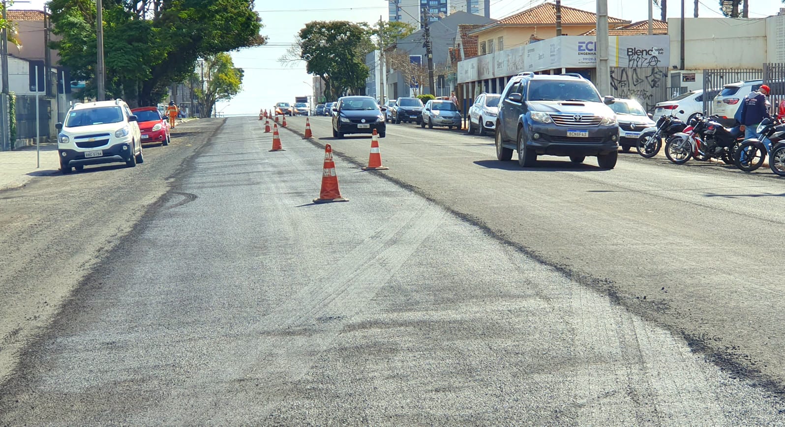 A Prefeitura de Ponta Grossa segue com os serviços de manutenção do pavimento na Rua Balduíno Taques, região central da cidade, para melhoria das condições do asfalto.