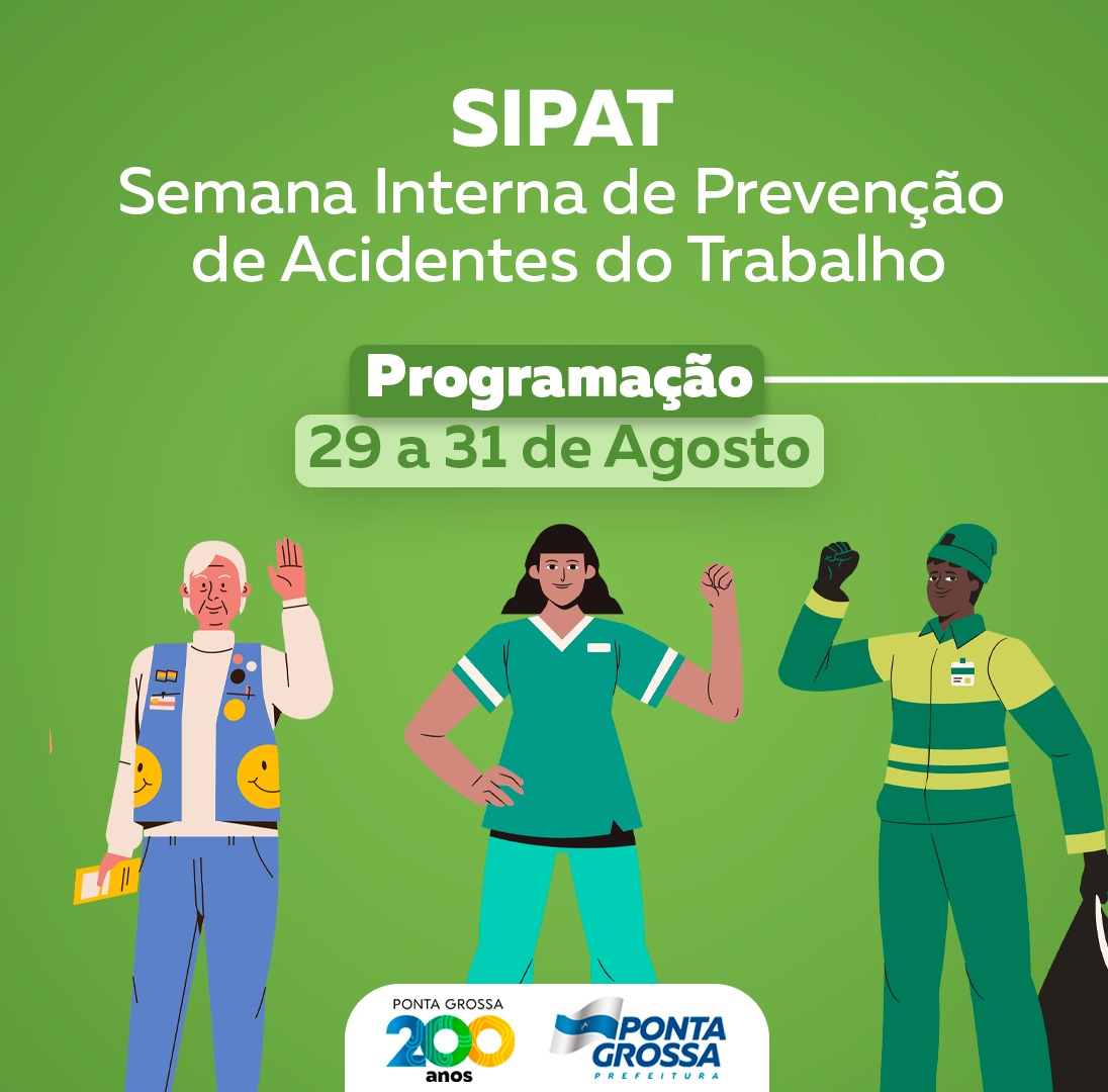 De 29 a 31 de agosto, o paço municipal recebe a Semana Interna de Prevenção de Acidentes do Trabalho (SIPAT), que contará com palestras e atividades que visam promover a segurança e saúde, além do sorteio de brindes. A ação organizada pela Comissão Interna de Prevenção de Acidentes (CIPA) é destinada aos servidores municipais e acontece na Prefeitura e Câmara Municipal de Ponta Grossa.