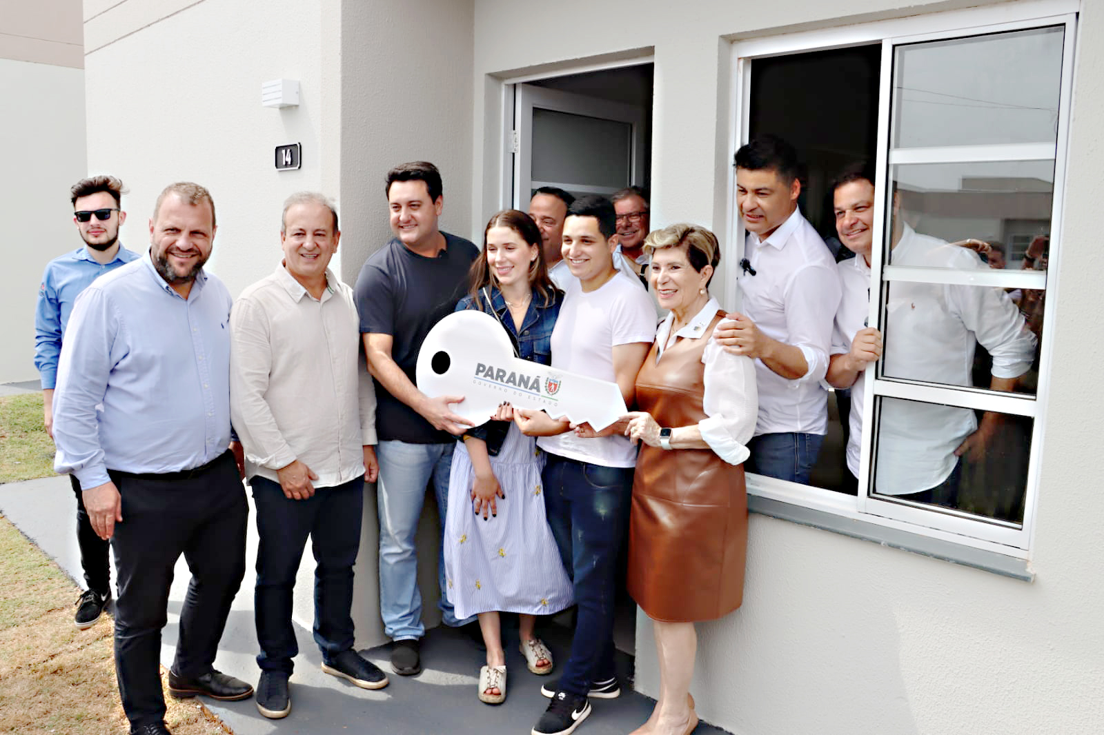 A cerimônia de entrega reuniu, além da prefeita e do governador, o secretário de estado de Infraestrutura e Logística e deputado federal, Sandro Alex, o secretário de estado de Inovação, Modernização e Transformação Digital – e deputado estadual -, Marcelo Rangel, o presidente da Cohapar, Jorge Lange, o deputado estadual e líder do governo na Assembleia, Hussein Bakri, o presidente da Construtora Pacaembu, Wilson Almeida Junior, além de representantes do Executivo e do Legislativo de Ponta Grossa e região.