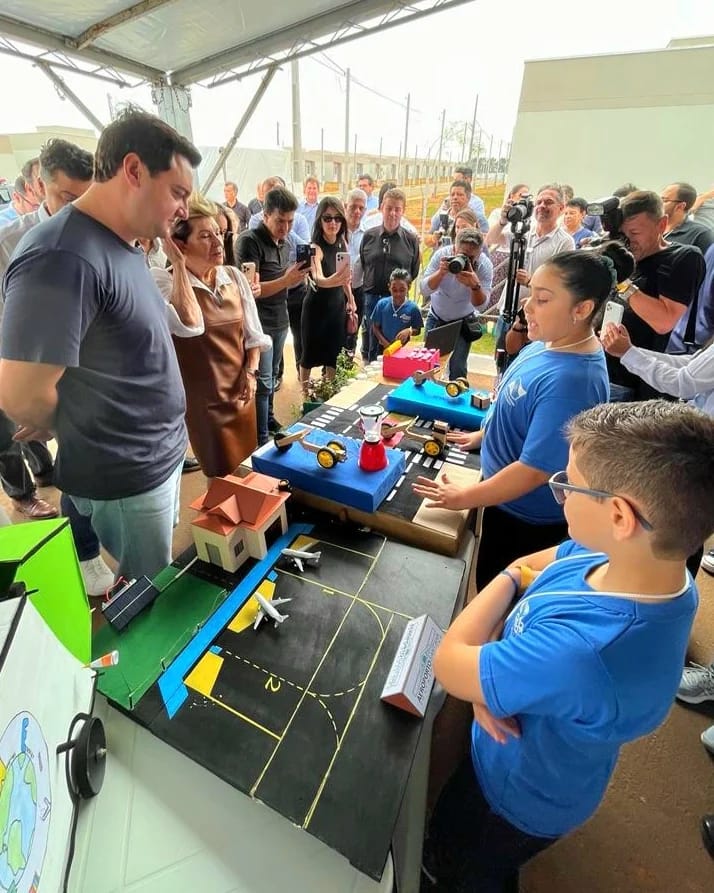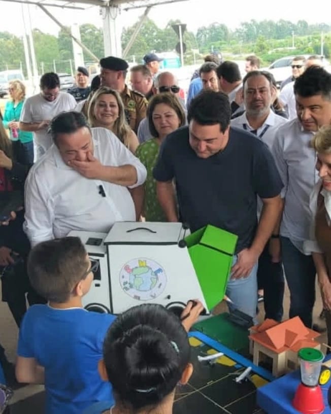 O governador do Paraná, Carlos Massa Ratinho Jr, acompanhado de lideranças estaduais e empresários, conheceu alguns dos projetos realizados pelos alunos da rede municipal de ensino de Ponta Grossa. Ele foi apresentado pelos estudantes ao Laboratório de Aprendizagem Criativa (LAC) e ao Jovens Empreendedores Primeiros Passos (JEPP), programas de inovação e empreendedorismo realizado pela Secretaria Municipal de Educação.