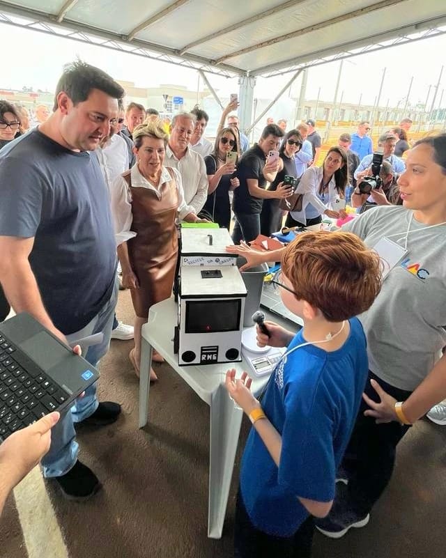 Nathaniel Nicolas Ferreira Quadros, da Escola Municipal Dr Carlos Ribeiro de Macedo, foi um dos estudantes que apresentaram os trabalhos do LAC. “Aproveitamos a visita do governador para mostrar nosso projeto. A professora me ajudou e consegui mostrar como funciona, em uma apresentação bem resumida, eles gostaram bastante”, conta o aluno. O pai, Douglas dos Santos Quadros, também elogiou o filho. “A gente fica impressionado e orgulhoso com a disponibilidade e a inteligência dele, e também com a escola, que é muito boa e qualificada. Toda a família está muito feliz e tem muito orgulho dele por estar participando dos projetos, que são um grande incentivo para a vida dele”, relata Douglas.