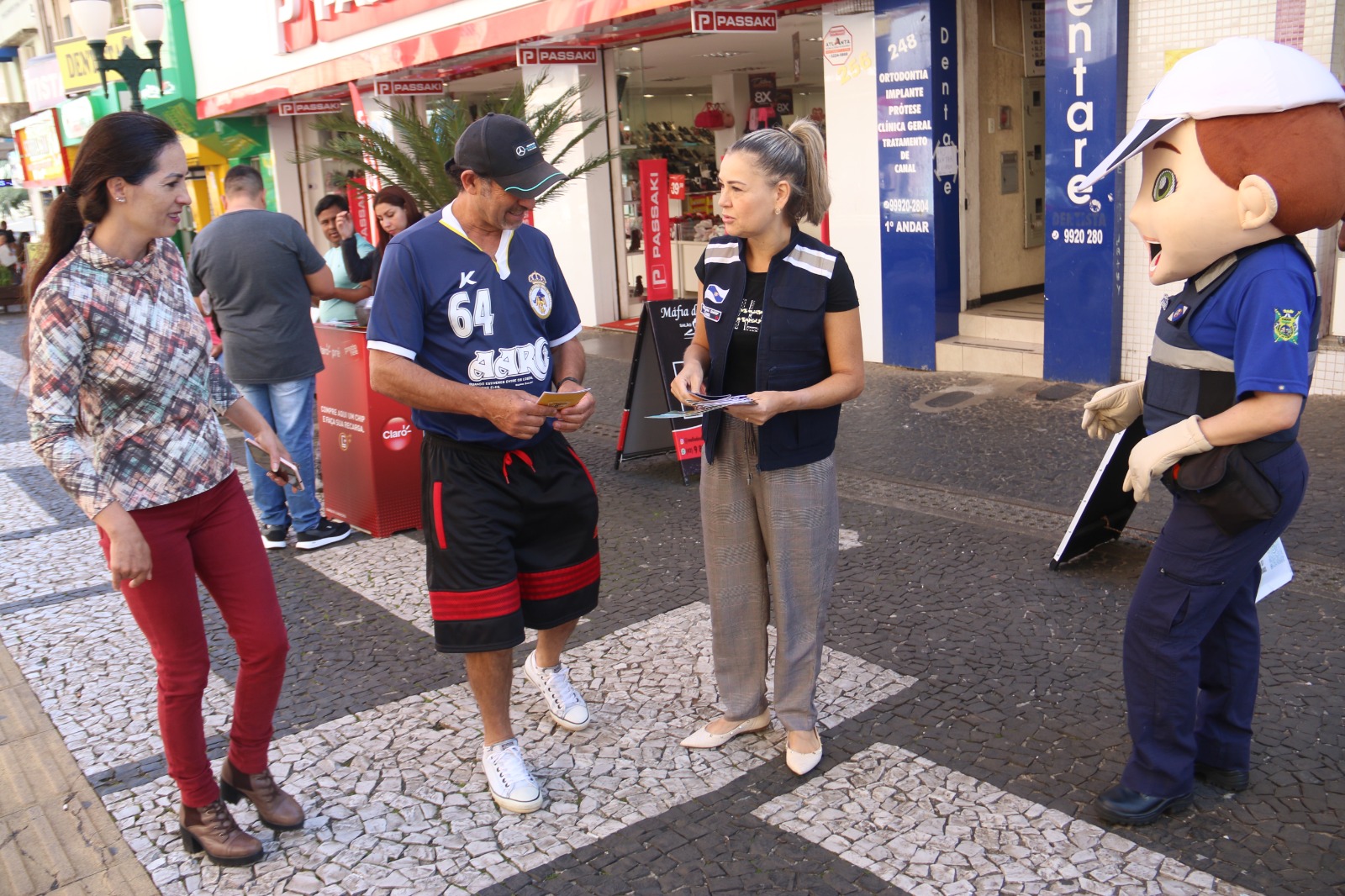 A Prefeitura de Ponta Grossa realizou nesta quinta-feira (23), no Calçadão da Coronel Cláudio, próximo ao Ponto Azul, uma ação de conscientização dos cuidados com o trânsito, realizada pela Superintendência de Trânsito, da Secretaria Municipal da Cidadania e Segurança Pública, em parceria com o DER e DETRAN. Cerca de 300 pessoas foram abordadas por agentes de trânsito que participaram da ação. Além da entrega de material educativo, os profissionais orientaram os munícipes que passaram pelo local.