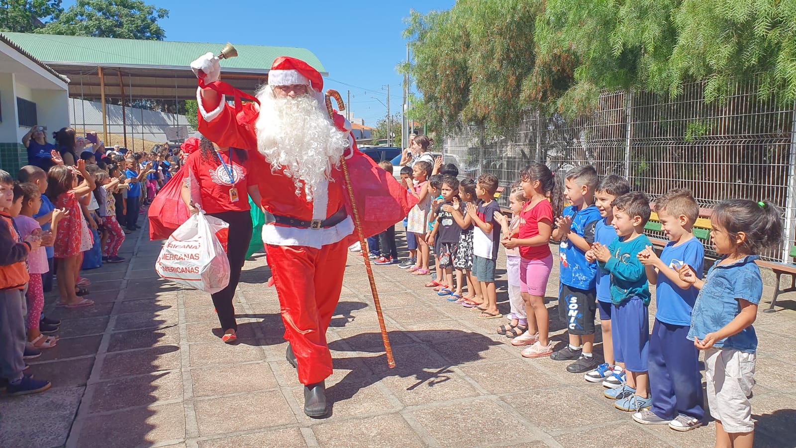 O Papai Noel dos Correios já está percorrendo os CMEIs e Escolas Municipais escolhidos pela empresa para presentear as crianças neste Natal. Neste ano receberão os brinquedos cerca de 800 crianças de cinco unidades selecionadas.