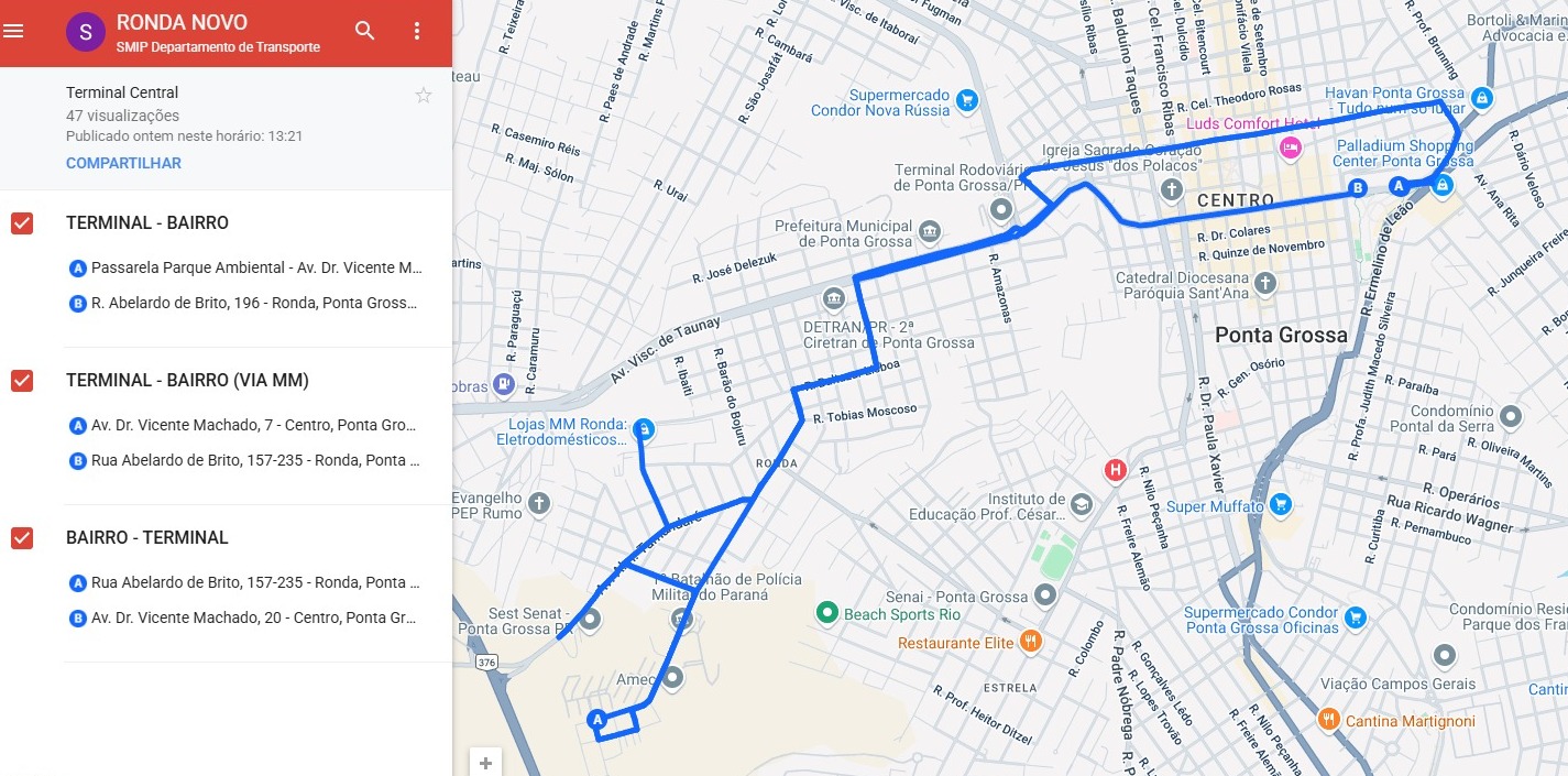 A nova rota da linha Ronda pode ser acessada neste link: https://www.google.com/maps/d/u/2/edit?mid=17r6ynjz491jT4toghIId3-fA16xhSbs&usp=sharing
