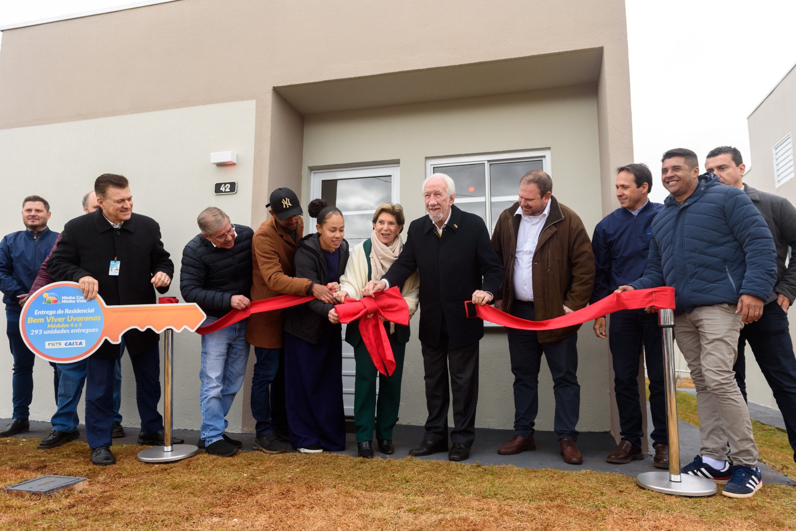 A prefeita de Ponta Grossa, Elizabeth Schmidt, e o governador em exercício, Darci Piana, participaram na manhã desta quinta-feira (03) da entrega de 293 casas do Residencial Bem Viver Uvaranas. O empreendimento faz parte dos módulos 4 e 5, da fase 3, da Pacaembu Construtora.