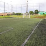 Os trabalhos realizados incluem intervenções no gramado sintético, conserto e pintura das traves, troca de redes, reparos nas telas e soldas nos alambrados.