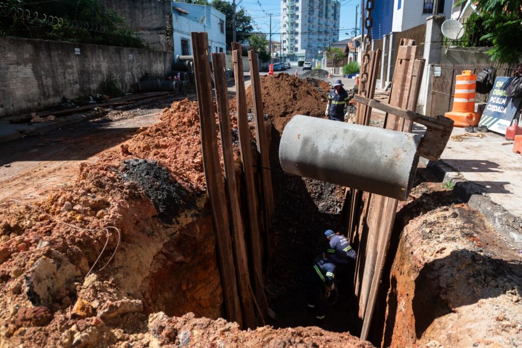 Um dos exemplos em andamento é a extensão e ampliação de uma galeria pluvial entre as ruas Estados Unidos e Almirante Custódio de Mello, na região conhecida como Vila Ezilda – próximo à Rodoviária. No local, está sendo construída uma nova conexão com maior capacidade, que direcionará as águas da região para um dos arroios da bacia do Rio Ronda. Neste ponto, são 150 metros de galeria nova em execução.