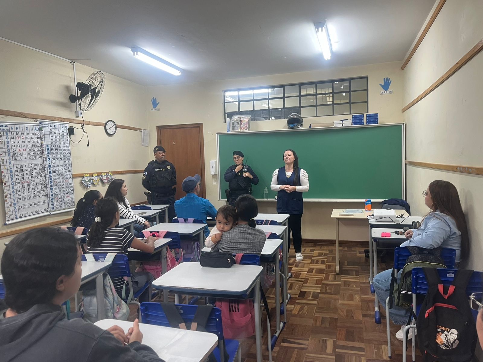 Na manhã de hoje, agentes do GRCEM participaram de uma reunião com pais e responsáveis na Escola Municipal Professora Haydeê Ferreira de Oliveira, no bairro Contorno. Durante o encontro, os guardas orientaram sobre a importância do acompanhamento no trajeto escolar e como essa prática pode evitar diversas situações de risco.