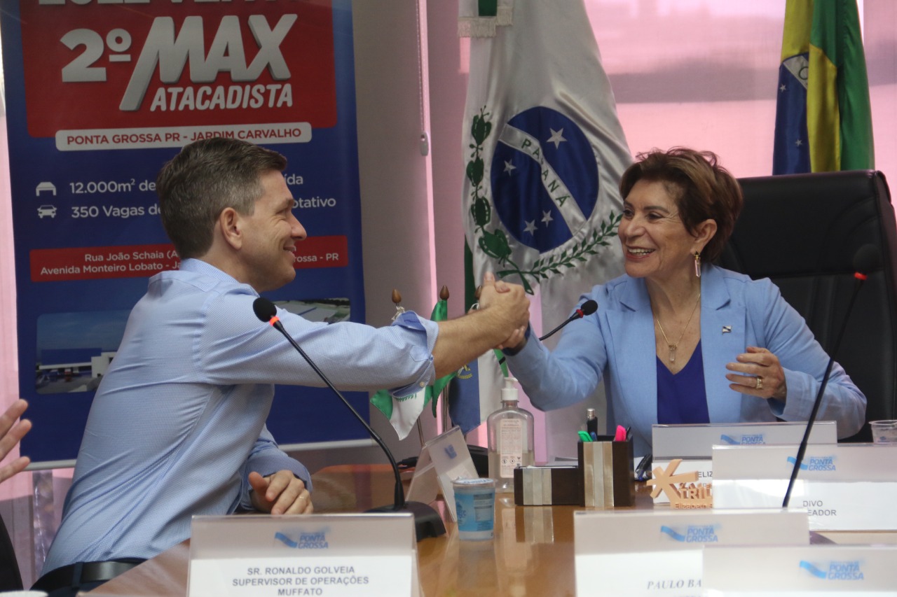 A Prefeitura de Ponta Grossa, juntamente com o Grupo Muffato oficializaram nesta sexta-feira (27) no Paço Municipal, o lançamento da segunda loja em Ponta Grossa do Max Atacadista que será instalada no Jardim Carvalho. A solenidade contou com a presença da prefeita Elizabeth Schmidt; do diretor do Grupo Muffato, Ederson Muffato e demais gerentes da empresa; como também dos vereadores Divo, Jairton da Farmácia e Paulo Balansin. De acordo com o Grupo Muffato, serão investidos R$ 50 milhões de reais na instalação do novo atacarejo que deve iniciar o atendimento entre os meses de agosto e setembro deste ano.