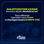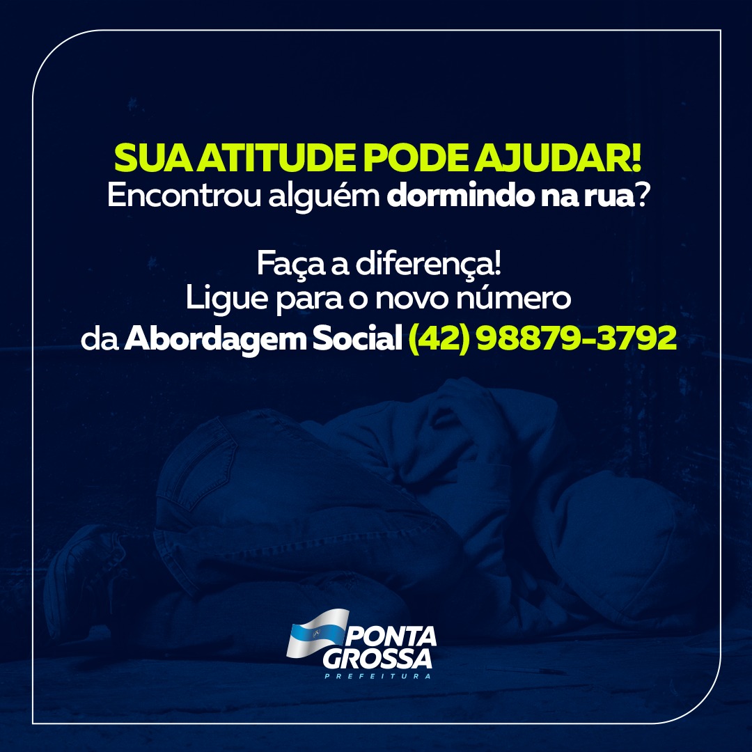 A Fundação de Assistência Social de Ponta Grossa informa que o telefone do Serviço de Abordagem Social mudou. Agora a equipe é acionada pelo número 98879-3792.