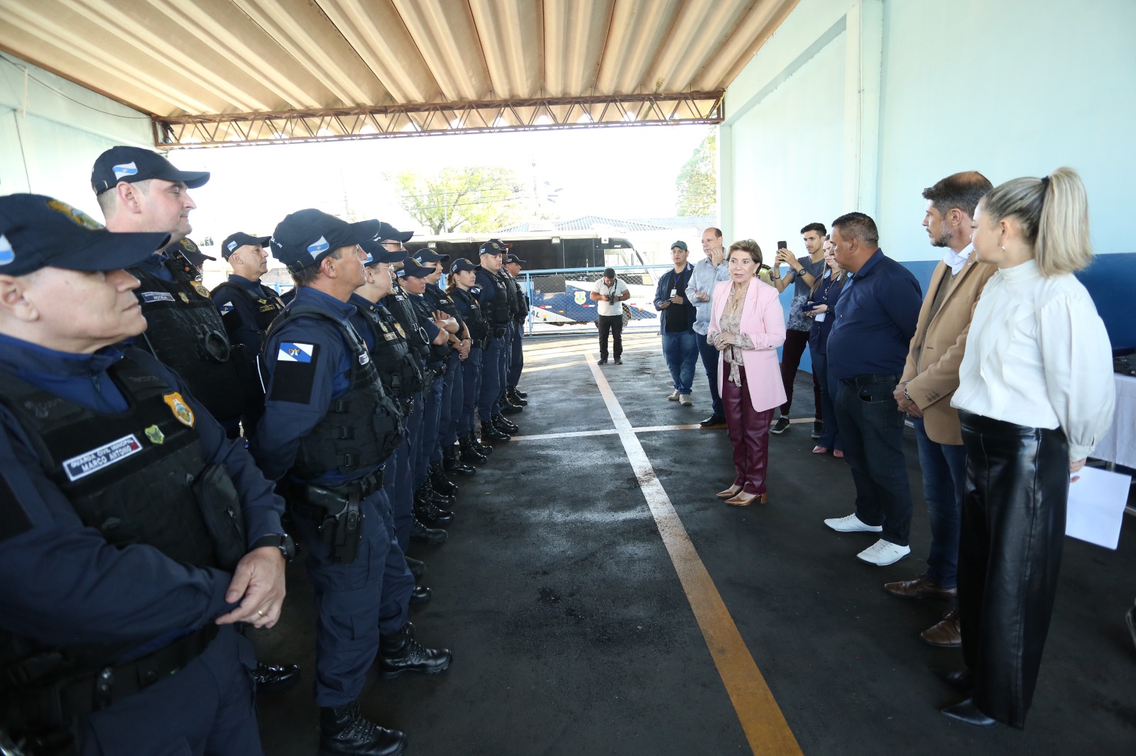 A Prefeitura de Ponta Grossa promoveu, nesta sexta-feira (12), a entrega oficial de 57 novas pistolas para a Guarda Civil Municipal. As armas foram adquiridas com recursos do Município, incluindo emendas impositivas destinadas pelos vereadores Divo e Celso Cieslak.