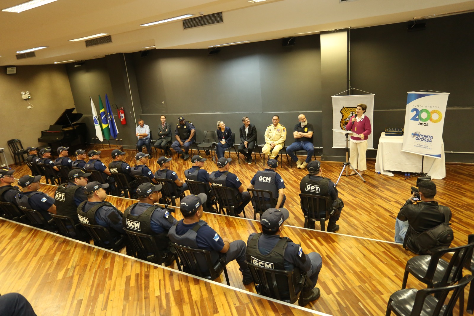 A prefeita Elizabeth Schmidt realizou a entrega de medalhas para 68 agentes da Guarda Civil Municipal de Ponta Grossa. O evento, promovido pela Secretaria de Cidadania e Segurança Pública na tarde de ontem (27), homenageou os integrantes da GCM com mais de 20 anos de serviços prestados à comunidade.