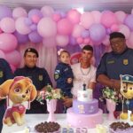 Aluna do CMEI Ana Neri, no bairro Estrela, Sarah contou com a presença de uma equipe do Grupamento de Ronda Comunitária Escolar Municipal (GRCEM) e do comandante da GCM, o inspetor Alessandro de Macedo, durante a festa em que comemorava seus quatro anos.