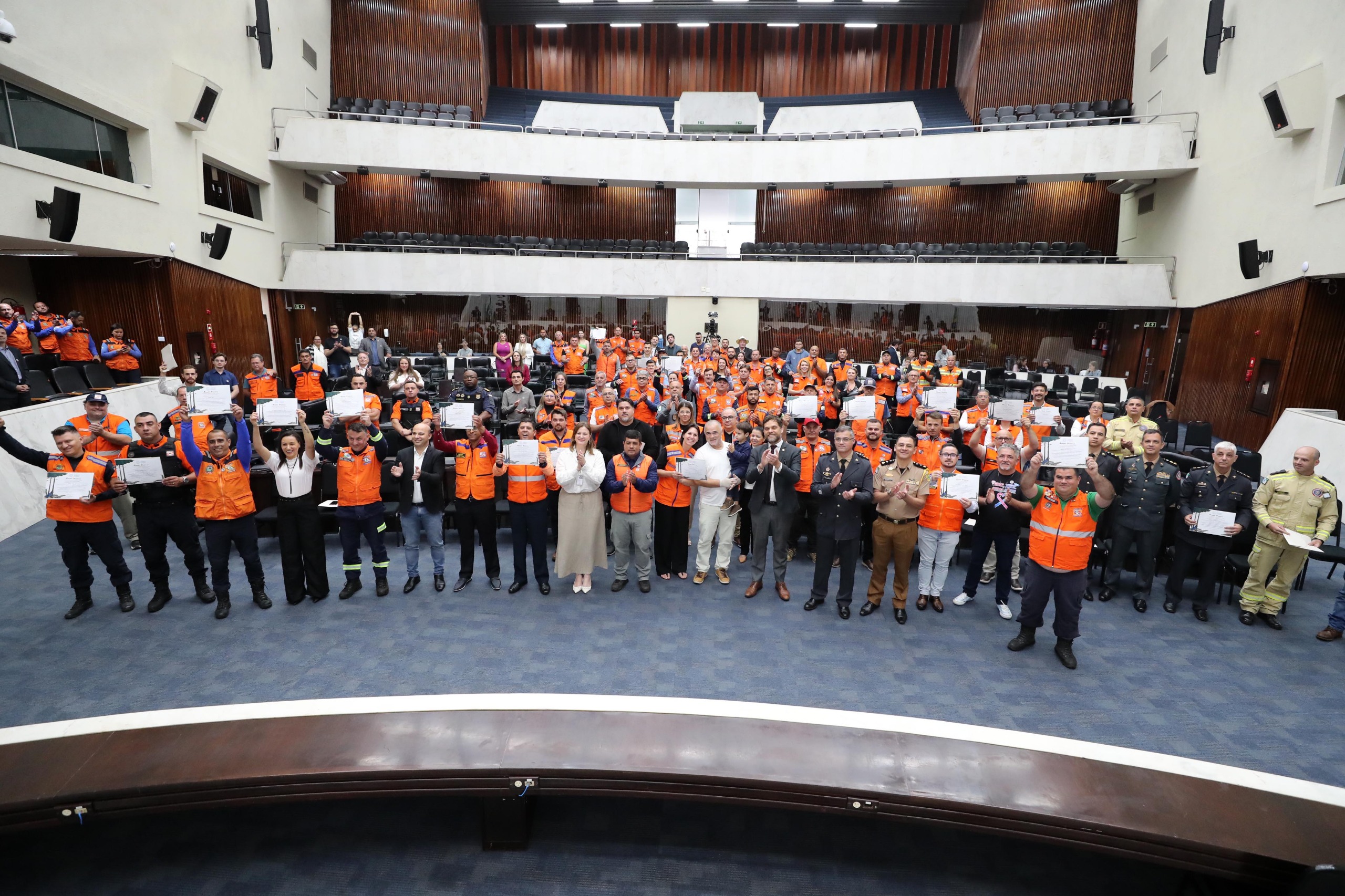 A Defesa Civil da Prefeitura de Ponta Grossa, órgão vinculado à Secretaria de Cidadania e Segurança Pública, foi homenageada pela Assembleia Legislativa do Paraná (ALEP) pelos trabalhos prestados à comunidade. A cerimônia de entrega do diploma de menção honrosa foi realizada nesta quinta-feira (21) e contou com a presença de diversas autoridades e de representantes de outras 18 coordenadorias de Defesa Civil do estado do Paraná, que também foram homenageadas.