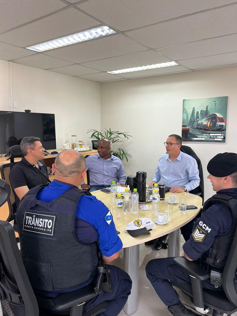 O secretário de Cidadania e Segurança Pública da Prefeitura de Ponta Grossa, Guilherme Rangel, esteve em Curitiba, nesta semana, para tratar sobre diversos assuntos envolvendo os próximos passos da pasta no Município. O objetivo da agenda foi fortalecer parcerias com órgãos do estado do Paraná, visando a melhoria dos serviços oferecidos pela Guarda Civil Municipal, pela Superintendência de Trânsito e Segurança Viária e pelo Procon do Município e incluiu reuniões com os secretários de estado, Hudson Leôncio Teixeira (Segurança Pública) e Santin Roveda (Justiça e Cidadania), além do diretor-geral do Detran-PR, Adriano Furtado, da coordenadora do Procon-PR, Claudia Silvano, do diretor-presidente da Celepar, André Gustavo Garbosa e do diretor de mercado da companhia, André Telles.