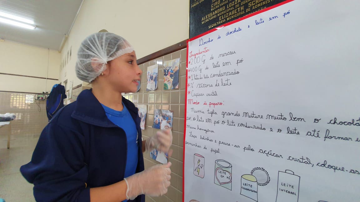 Lorena de Deus dos Anjos, professora do LAC na Escola Frei Elias Zulian, conta que o trabalho de desvendar a origem do chocolate envolveu todas as turmas. “Trabalhamos desde o surgimento do cacau, seu ciclo de produção, chegando à fábrica e incluindo uma parte prática, que foi a produção do brigadeiro que qualquer criança pode fazer”, conta ela. “Os alunos gostam dessa parte criativa, eles se sentem à vontade e querem criar. O formato de aulas que temos no Laboratório de Aprendizagem Criativa propicia essa interação”, conta a professora.