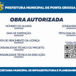 A Prefeitura de Ponta Grossa publicou o Decreto nº 25.258/2025, que regulamenta o artigo 22 da Lei Municipal nº 14.522/2022, o Código de Obras e Edificações do Município. O texto estabelece normas para a obrigatoriedade de placas de identificação em todas as obras em andamento a partir do dia 22 de maio.