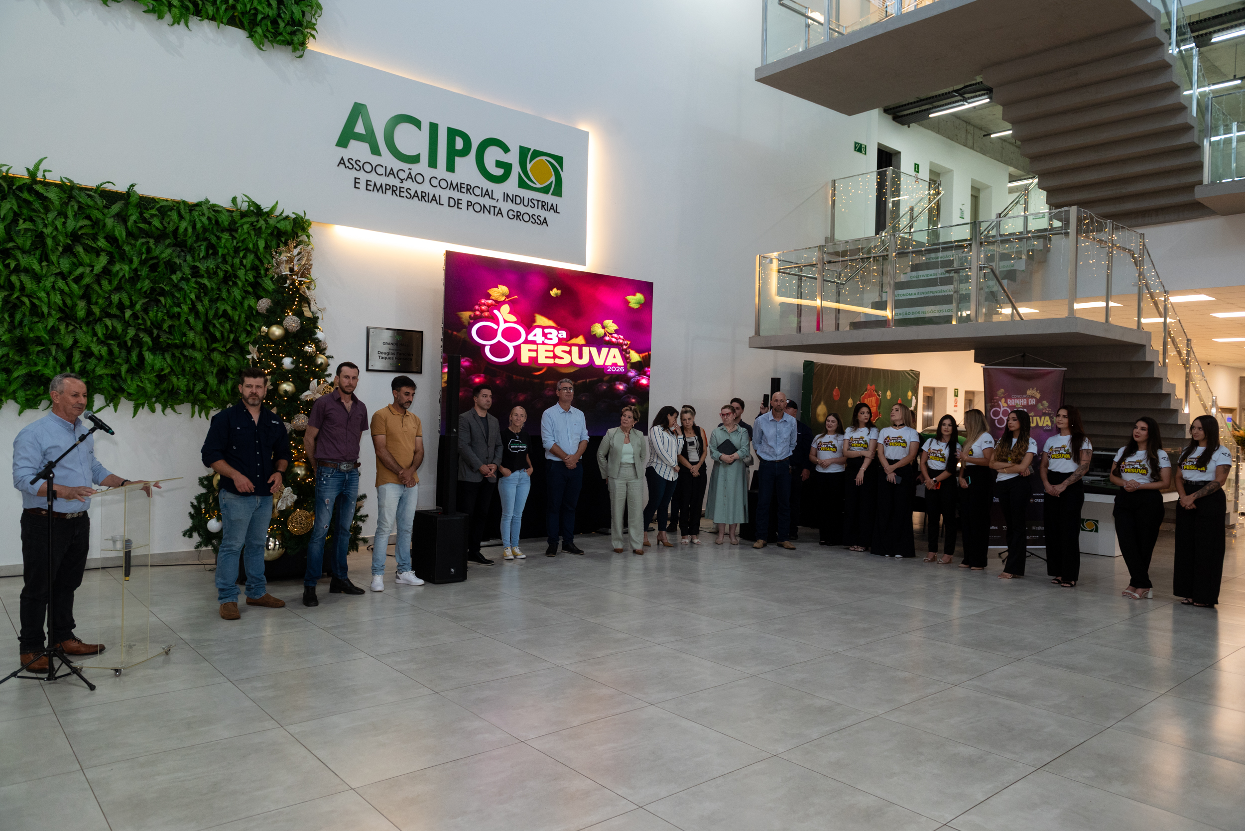 O lançamento da 43ª Fesuva foi realizado no auditório da Associação Comercial e Industrial de Ponta Grossa (Acipg), onde estiveram reunidas autoridades, produtores da fruta, empreendedores e demais parceiros que vão participar do evento. “Sabemos da tradição e da importância da Fesuva não só para os produtores de uva, mas para toda uma cadeia produtiva que se movimenta em torno desse evento durante o início do ano. Estamos muito motivados para fazer um evento especial, movimentar a economia local e oferecer uma opção ainda mais completa de lazer para a comunidade”, ressalta Izaltino Cordeiro dos Santos, secretário de Agricultura, Pecuária e Abastecimento.
