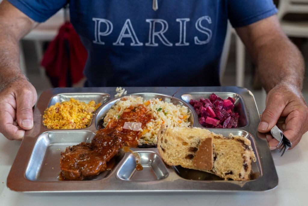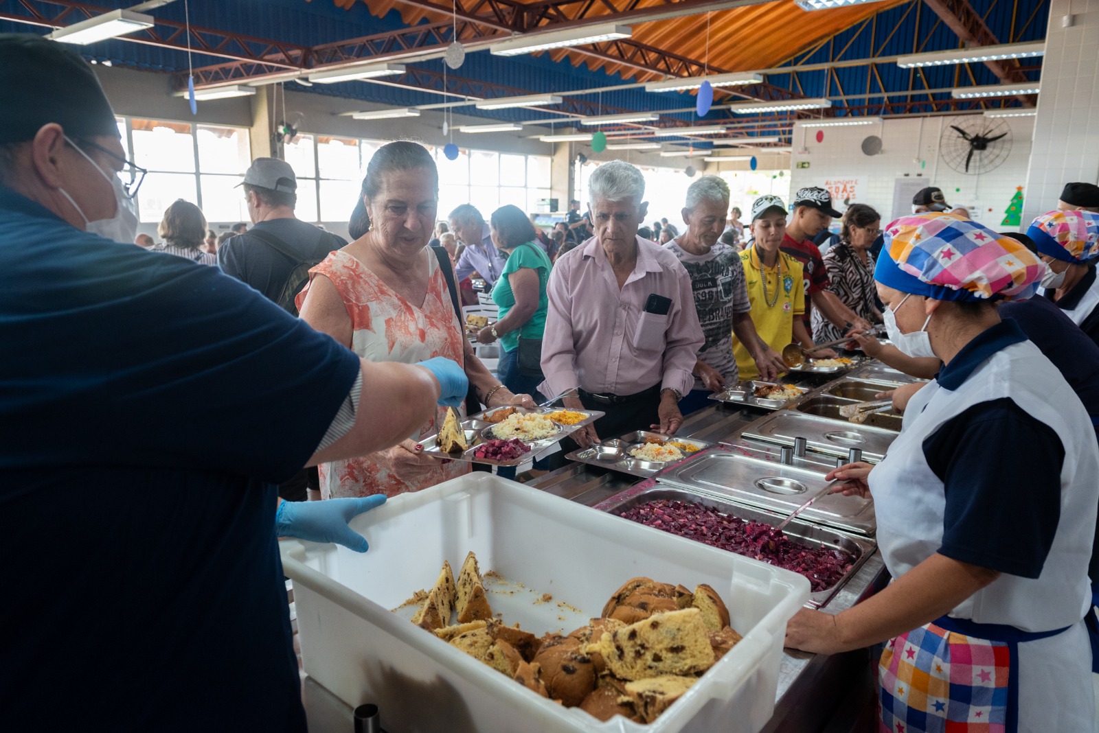 O cardápio natalino incluiu arroz à grega, feijão, lombo suíno grelhado ao barbecue, farofa natalina e salada russa. Como sobremesa, os usuários receberam chocotone. Ao todo, foram servidas mil refeições durante o evento, que reuniu a comunidade para uma celebração especial.