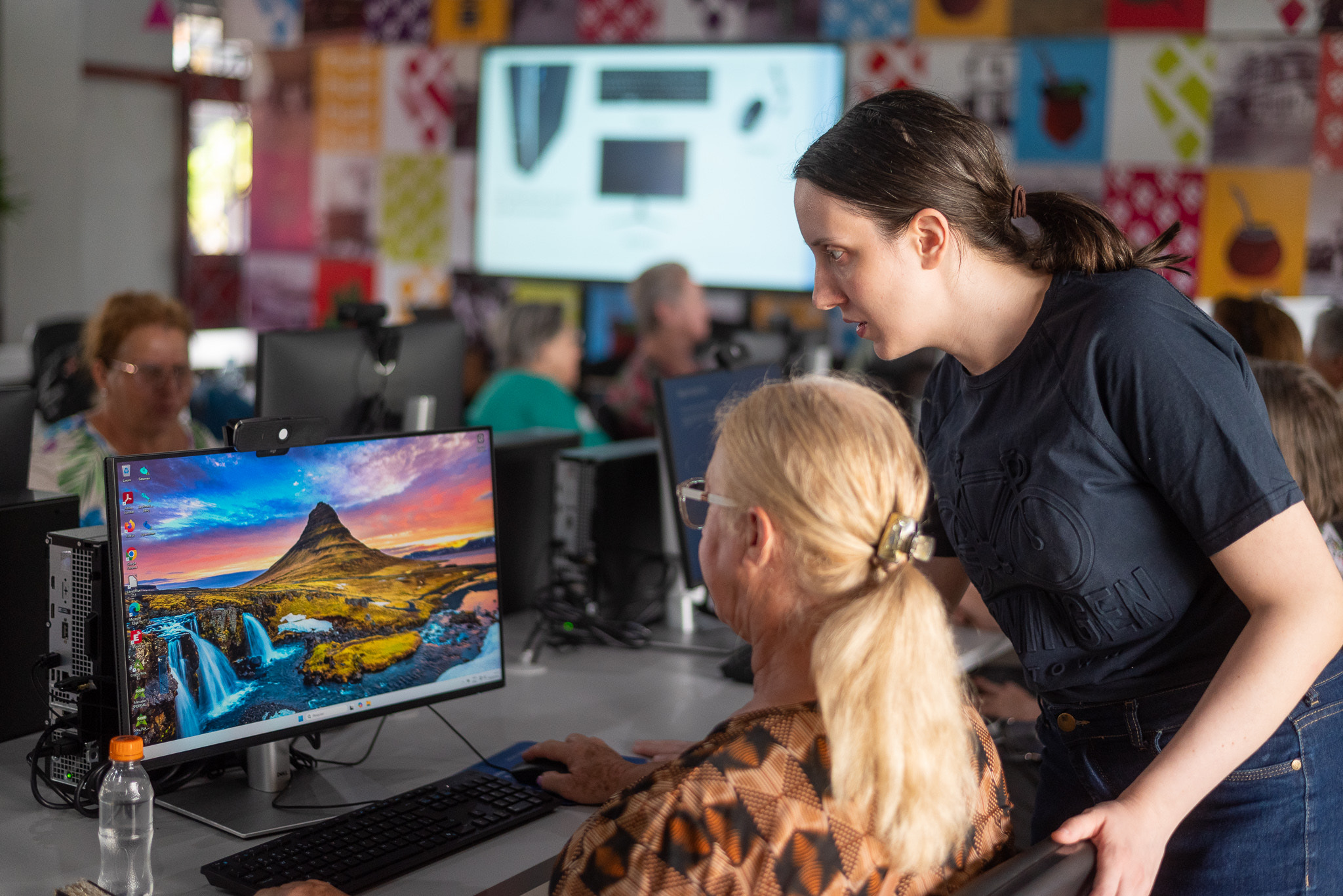 A programação teve início nesta quarta-feira (4) com o curso “Como usar o computador e a internet (50+)”, realizado na Estação Hub. A atividade foi voltada ao letramento digital e abordou noções básicas de computação, funcionamento de equipamentos, uso de programas essenciais e acesso à internet, promovendo mais autonomia e confiança para o público acima de 50 anos no uso das ferramentas digitais.