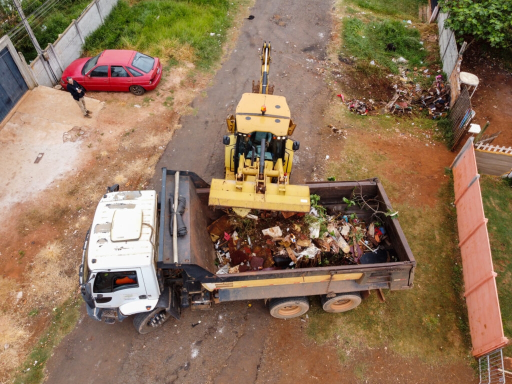 Entre os itens encontrados estão sofás, colchões, armários, restos de móveis e materiais de construção, evidenciando o impacto do descarte irregular no espaço urbano. O trabalho é realizado com apoio de máquinas e caminhões da Prefeitura e deve continuar nos próximos dias na mesma região.