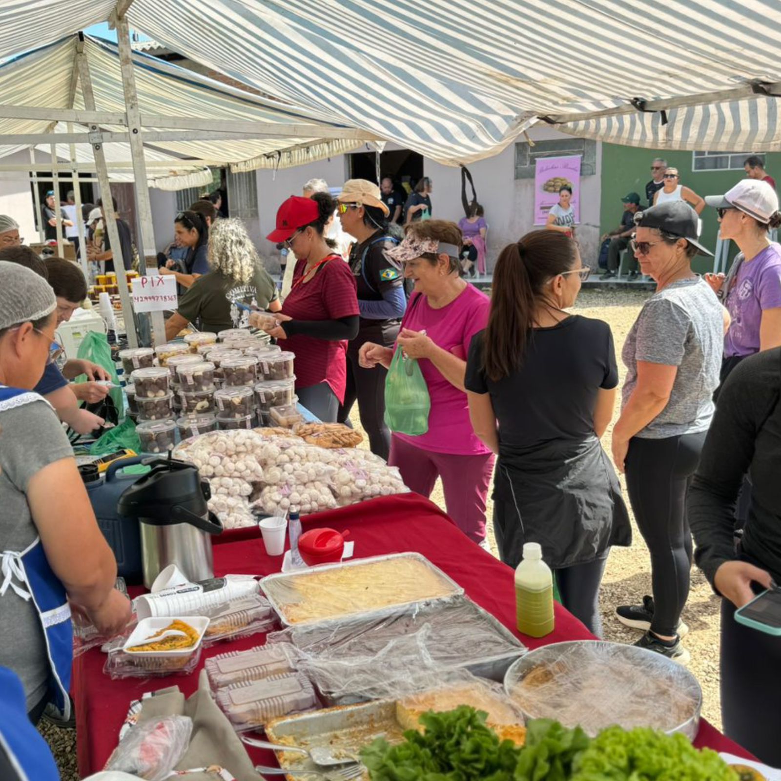 Além da caminhada, o evento contou com feira de produtos locais, com comercialização de artesanato, pães, doces e hortifrutis, fortalecendo a economia da comunidade e incentivando a produção regional. Também foram oferecidas opções de café da manhã e almoço aos participantes.
