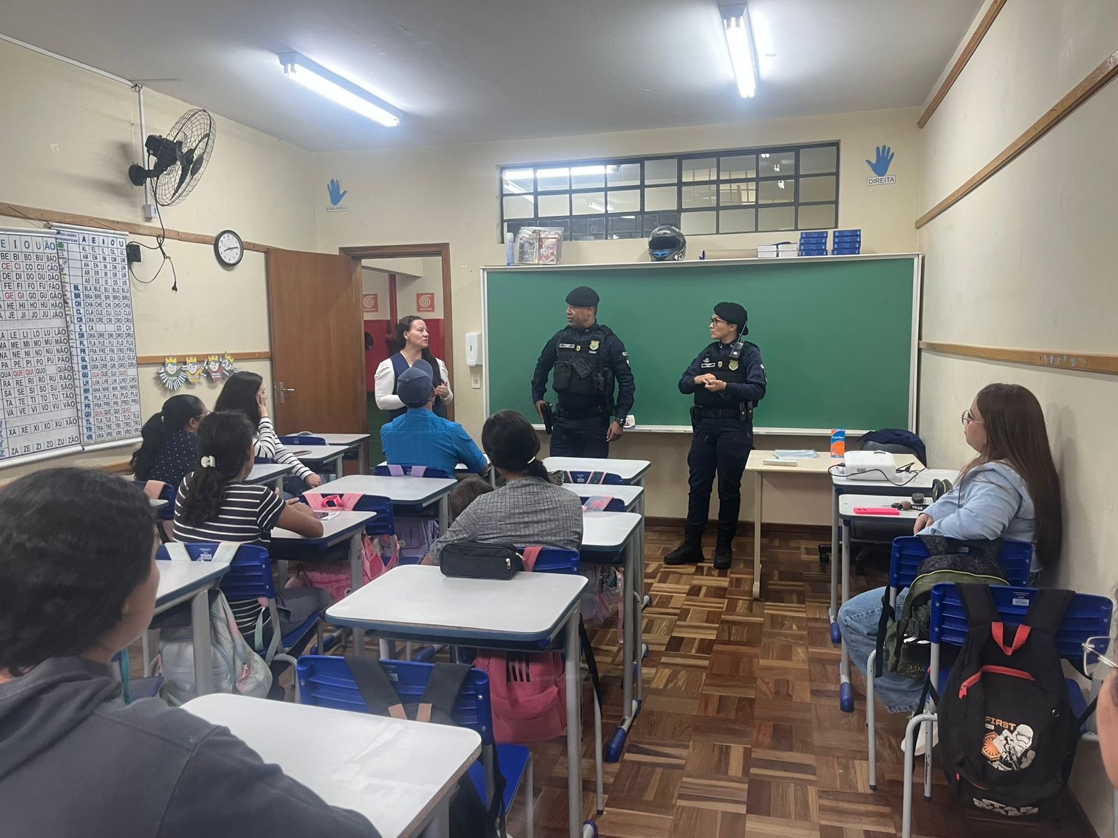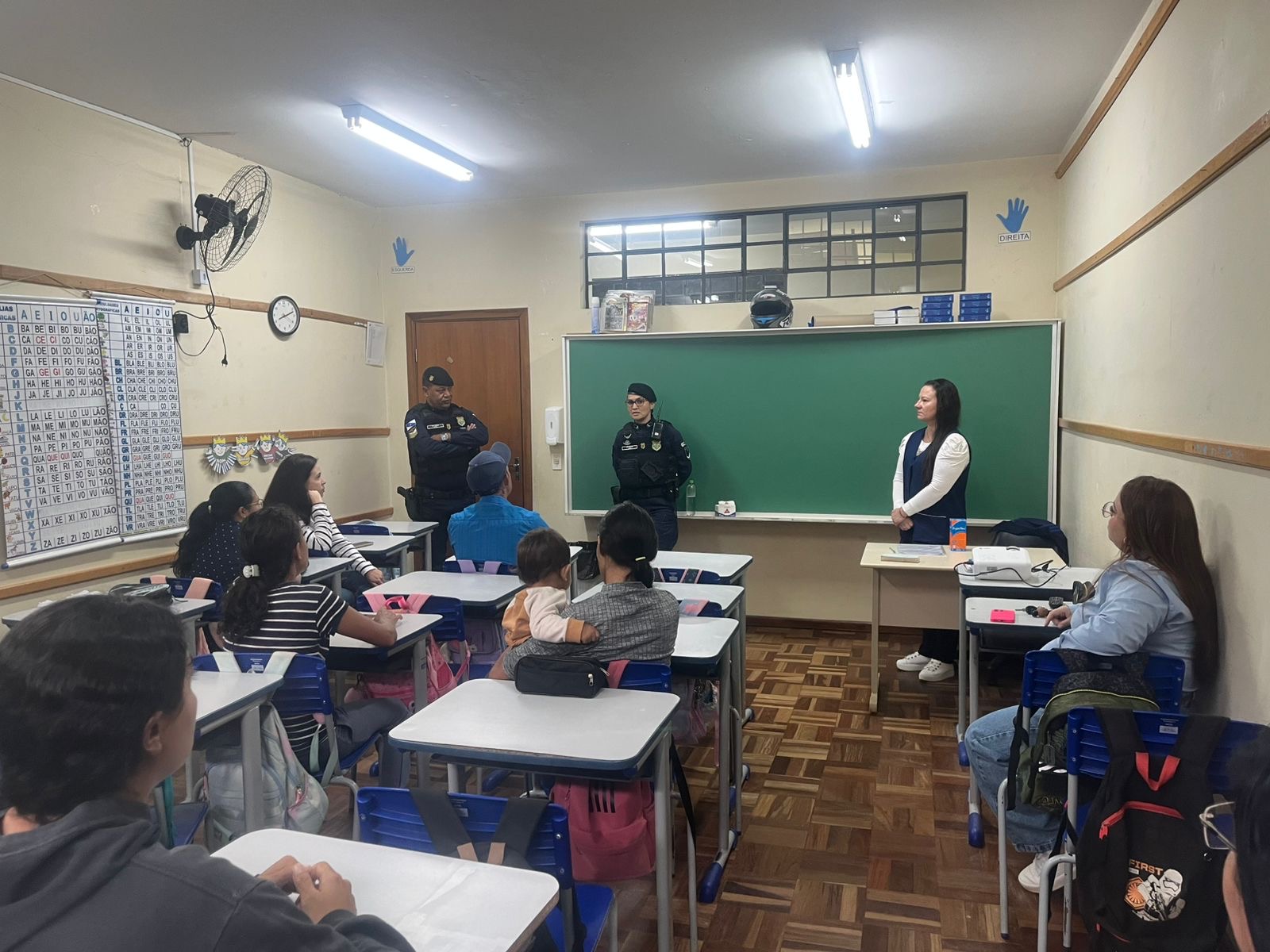Na manhã de hoje, agentes do GRCEM participaram de uma reunião com pais e responsáveis na Escola Municipal Professora Haydeê Ferreira de Oliveira, no bairro Contorno. Durante o encontro, os guardas orientaram sobre a importância do acompanhamento no trajeto escolar e como essa prática pode evitar diversas situações de risco.